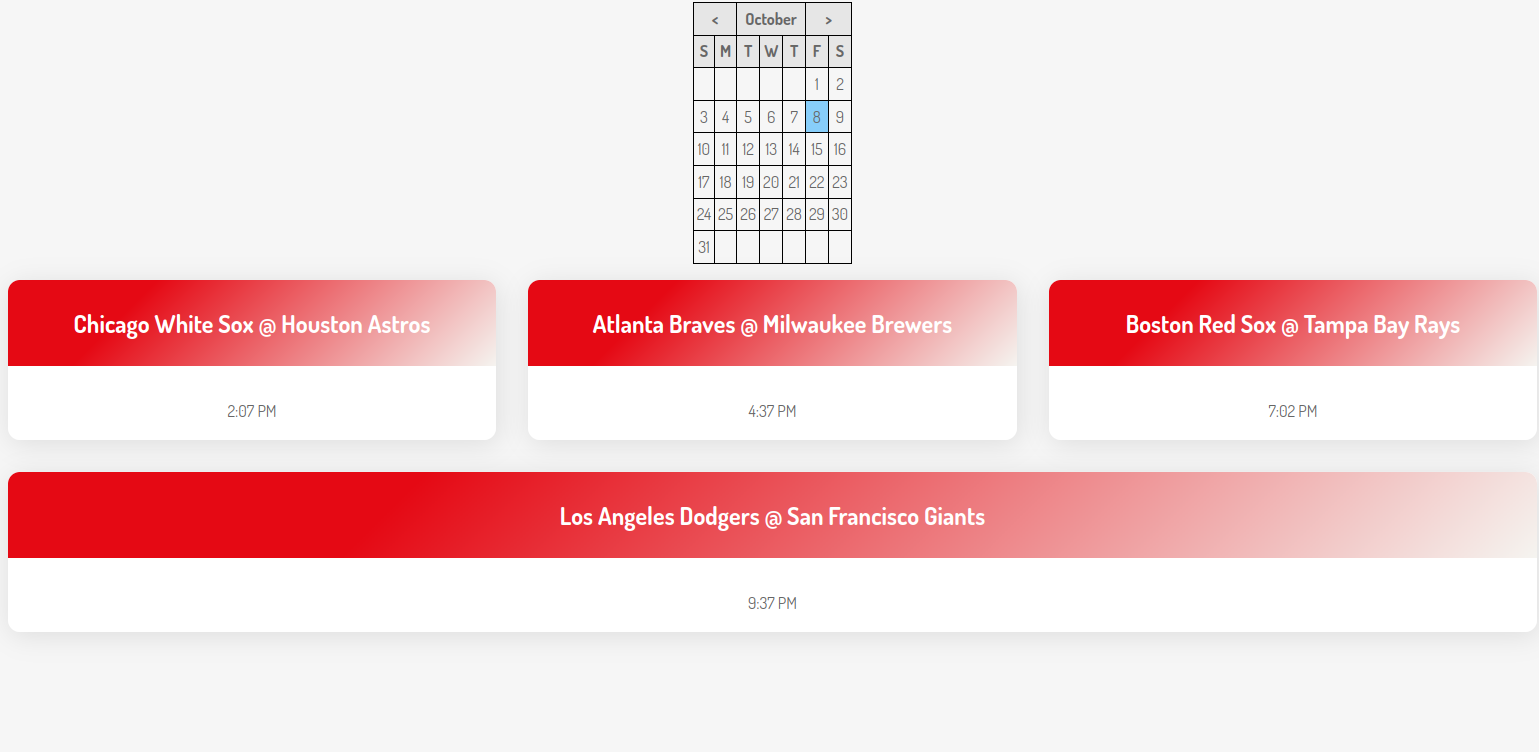 Simple JavaScript app to display the schedule for MLB. Similar to the NBA program above.